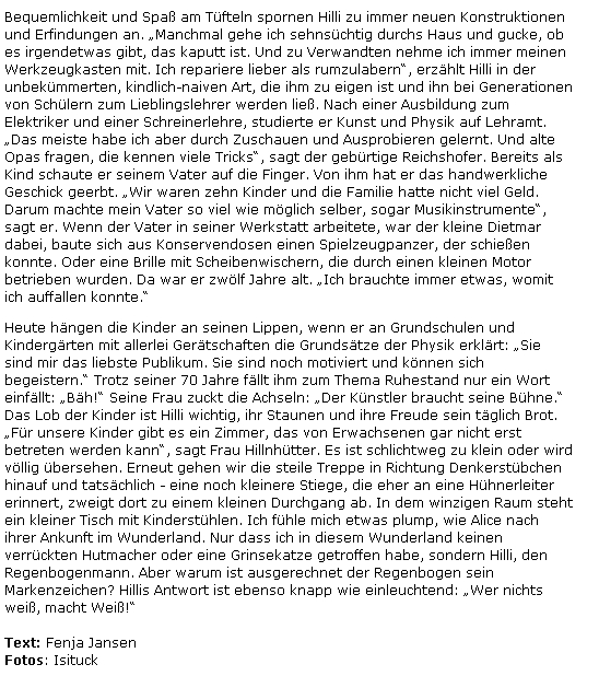 - Daniel Düsentrieb sähe neben Hilli alt aus. „Und ich habe noch