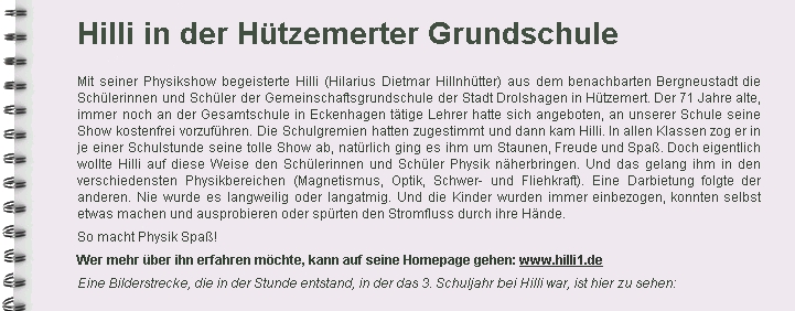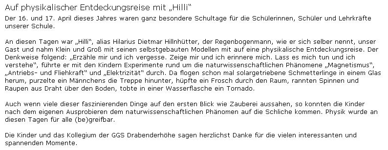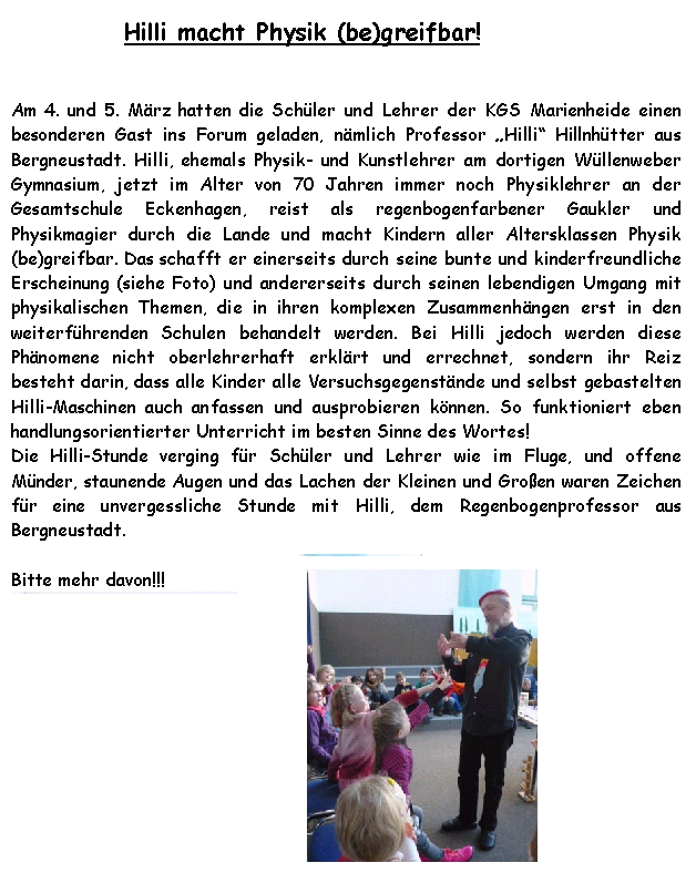 Physikshow von Hilarius Dietmar Hillnhütter (genannt Hilli) aus