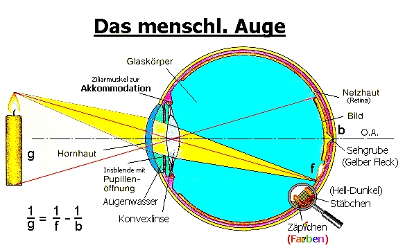 Da die Bildweite b ( Abstand zwischen Linse und Netzhaut) immer gleich