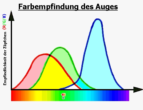 auf Rot, Grün oder Blau reagieren. Werden die drei verschiedenen Farbrezeptoren