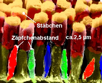 können, und ca. 7 Mio. Zäpfchen, die überwiegend in der