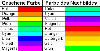 hat, entsteht das Phänomen der komplementären Nachbilder. Genau