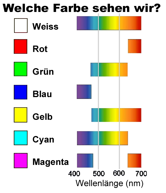 (RGB) paarweise angeregt, nehmen wir Gelb, Cyan und Magenta, sowie die