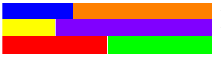 Gelb erhielt 3 Teile,Orange 4, Rot und Grün je 6, Blau 8 und Violett 9 Teile.