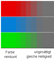 Farbton wird die Sättigung und Helligkeit präzisiert, womit die