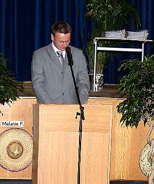 | Festredner: OStR. Schulte | OStD. Voith | Abiturientia 2003 | Festmusik! | Stufenleiter OStR. Schulte | Bürgermeister S. Noss | Festredner: Dr. Schmidt | Stufensprecher: Daniel Kunz (Abirede) | Melanie Frick | Isabel Roschinsky |