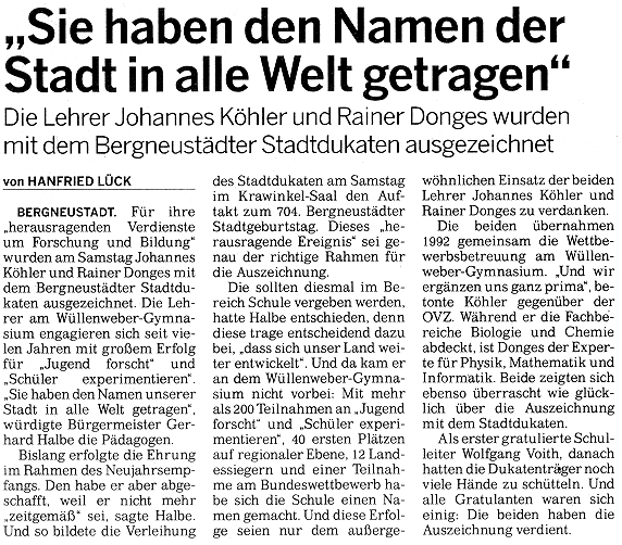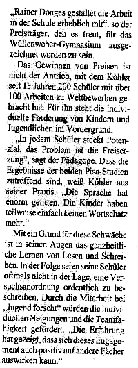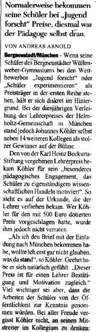 Herrn OStD. Wolfgang Voith: StD Köhler als Lehrer des Jahres