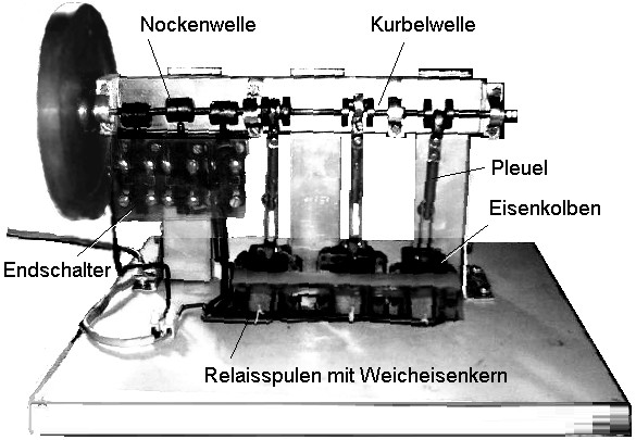 Stromfluss unterbrochen werden. Dazu haben wir eine Nockenwelle konstruiert,