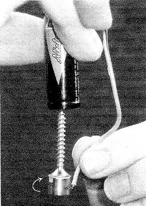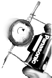 Schraubenspitze wiederum hängt am Minuspol einer 1,5 Volt Batterie.