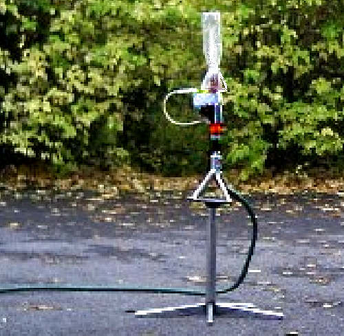 mit Hilli eine Wasserrakete nach diesem Prinzip. Aus einem alten Stuhl