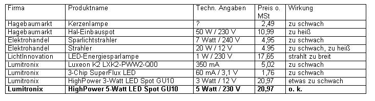 <High Power 5-Watt LED Spot GU 10> als am lichtstärksten erwies.