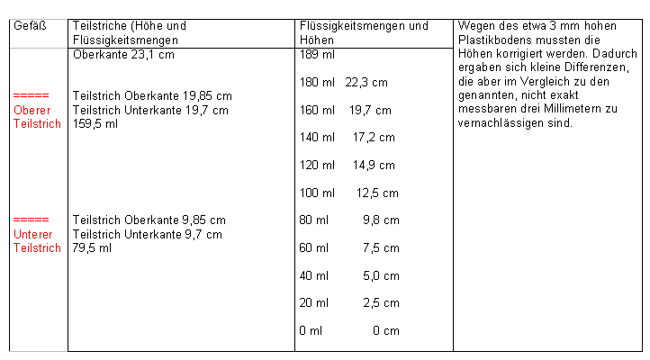 von 1 °C im Temperaturbereich von 20 °C nur um ca. 0,2 ml / 1000