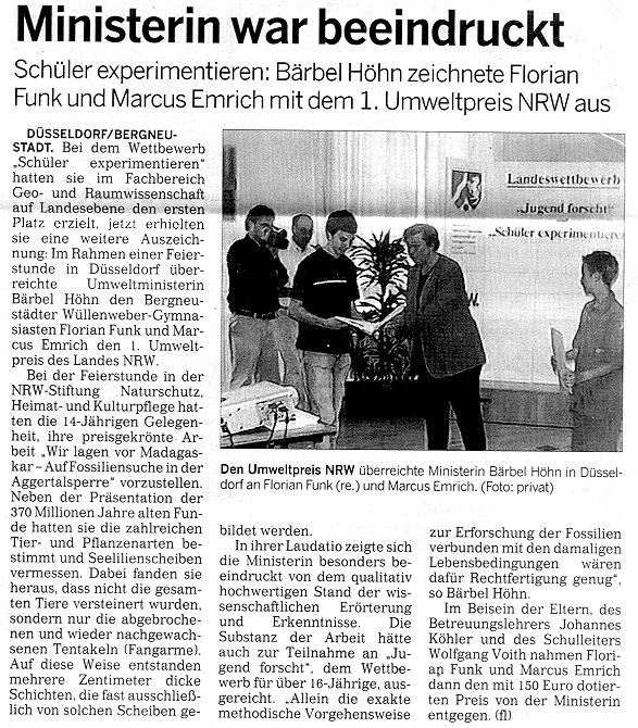 Wüllenweber-Gymnasiums Bergneustadt, die für ihre Arbeit „Wir
