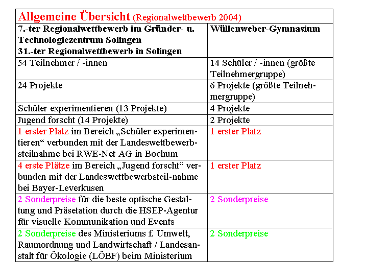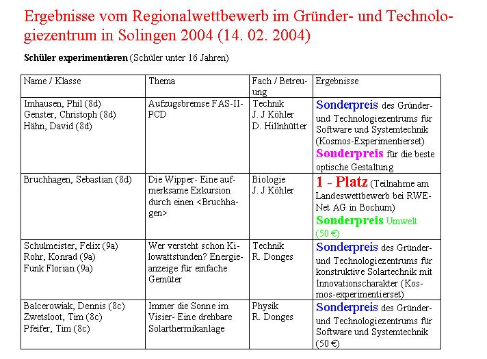 Bericht vom Regionalwettbewerb im Gründer- und Technologiezentrum am Samstag, den 14. 02. 2004 in Solingen |