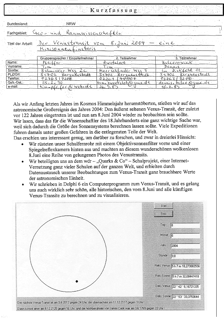K u r z f a s s u n g Venustransit Eine Untersuchung Balcerowiak, Dennis (9), Zwetsloot, Tim (9), Pfeifer, Tim (9)