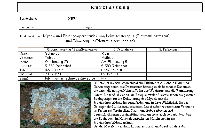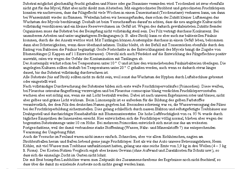 Thema: Mycel- und Fruchtkörperentwicklung beim Austernpilz |