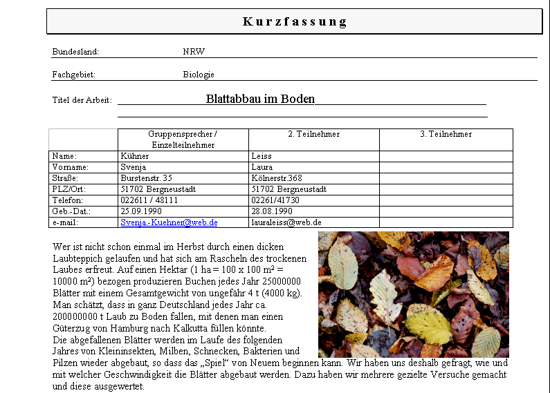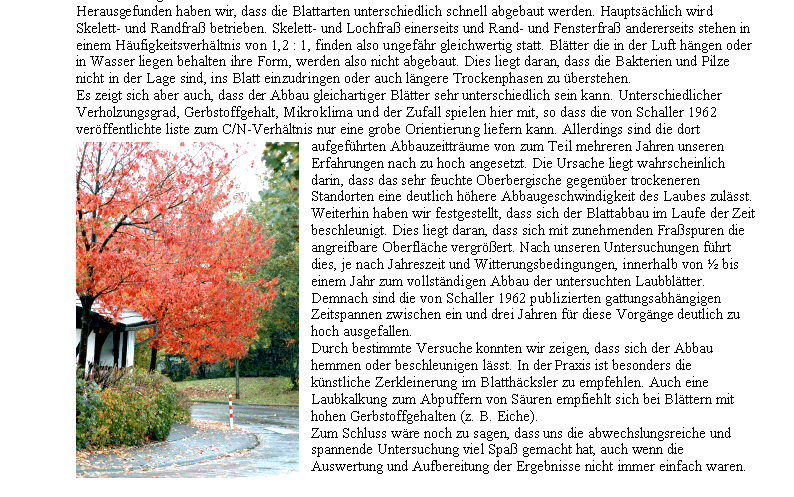 lang mit dem Blattabbau im Boden beschäftigt und konnten mit ihren