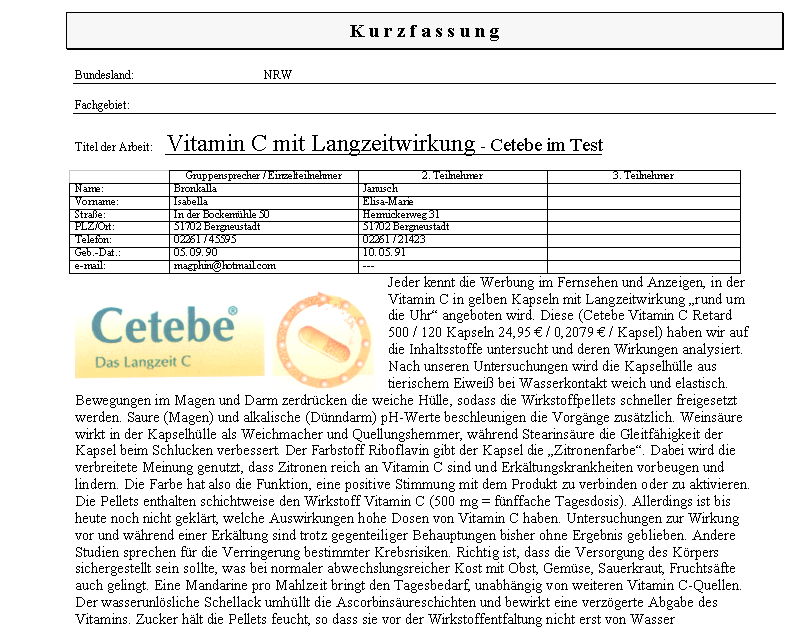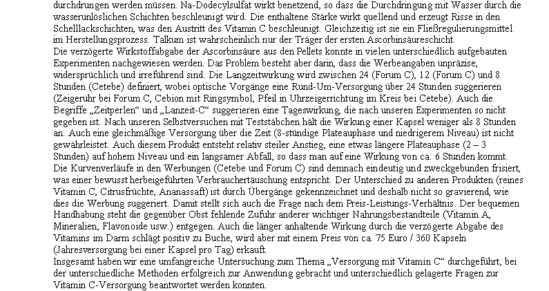 Ihr Thema „Vitamin C mit Langzeitwirkung – Cetebe im Test“ führte
