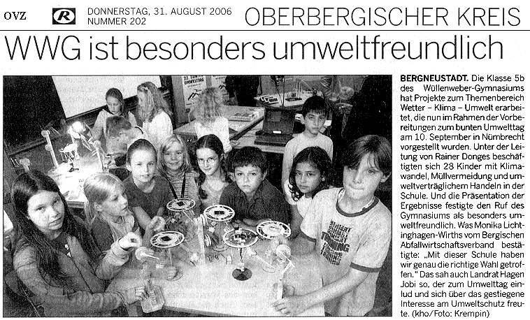 Das Energiesparprojekt des Wüllenweber- Gymnasiums startete im