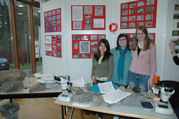 Die drei Schülerinnen (alle 10. Schuljahr) untersuchten im Bereich Geo- und Raumwissenschaften die Riffbildung in der Gummersbacher Mulde im unteren oberbergischen Giventium. Sie erhielten auch den Sonderpreis Umwelt.