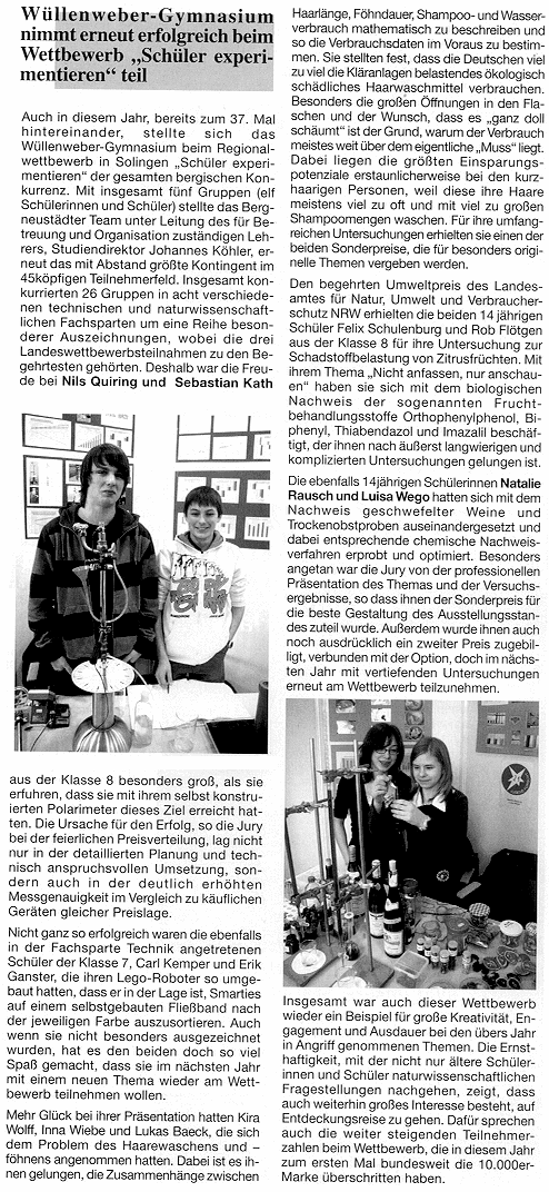 Nils Quiring u. David Kath, "Erfinder" eines neuen Polarimeters Nils Quiring und David Kath (13/14 / Kl8)