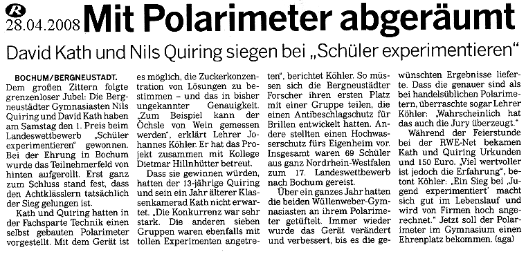 „Schüler experimentieren“ im April 2008 bei RWE-Net