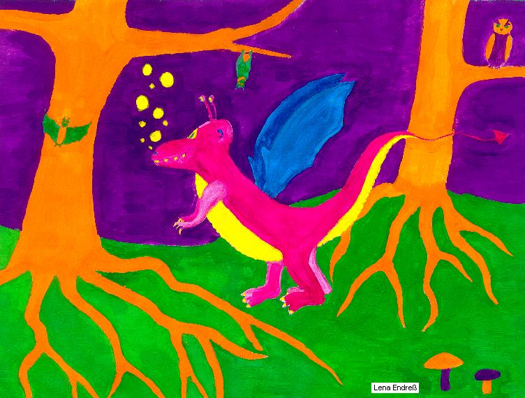 Farbmonster in der bunten Farbwelt (Deckfarbarbeit) Lena Endreß Kl.5b