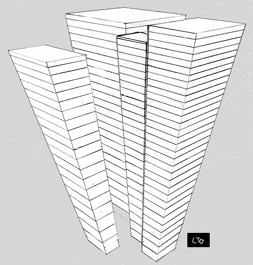 Wolkenkratzer in 3-Fluchtpunktperspektive