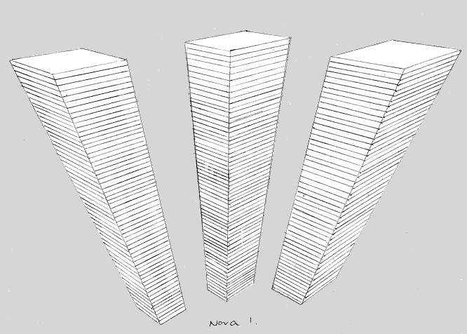 Wolkenkratzer in 3-Fluchtpunktperspektive