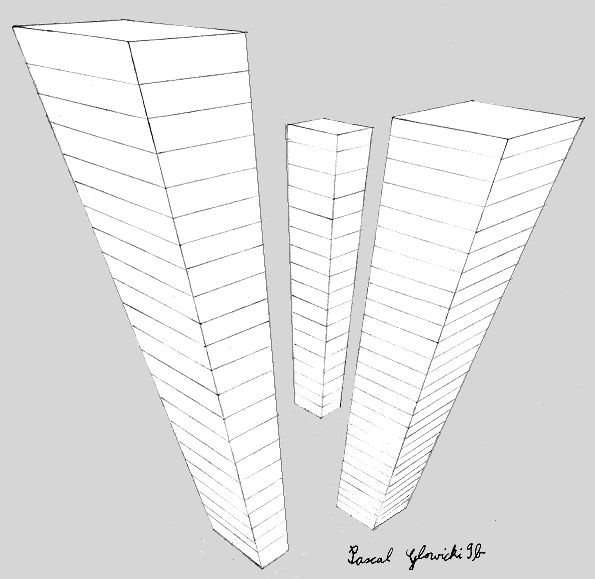 Wolkenkratzer in 3-Fluchtpunktperspektive