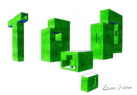 Kubische Farbkörper in 2-Fluchtpunktperspektive