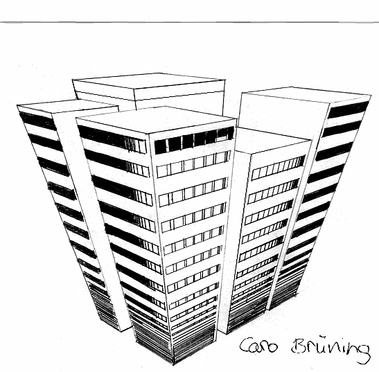Wolkenkratzer in 3-Fluchtpunktperspektive