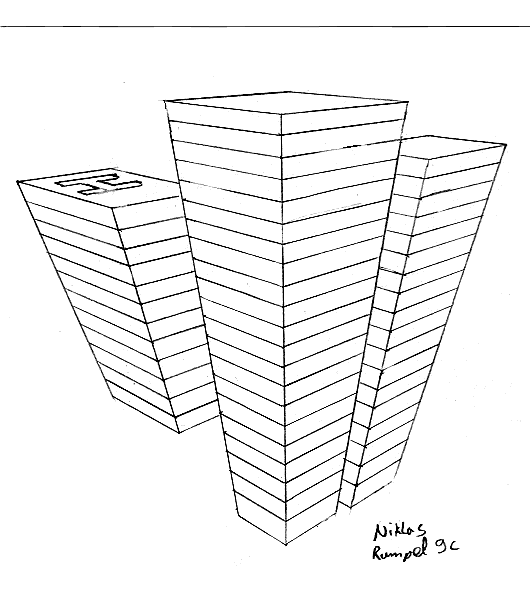 Wolkenkratzer in 3-Fluchtpunktperspektive