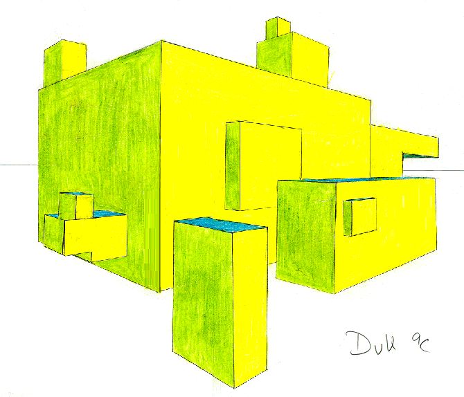 Kubische Farbkörper in 2-Fluchtpunktperspektive