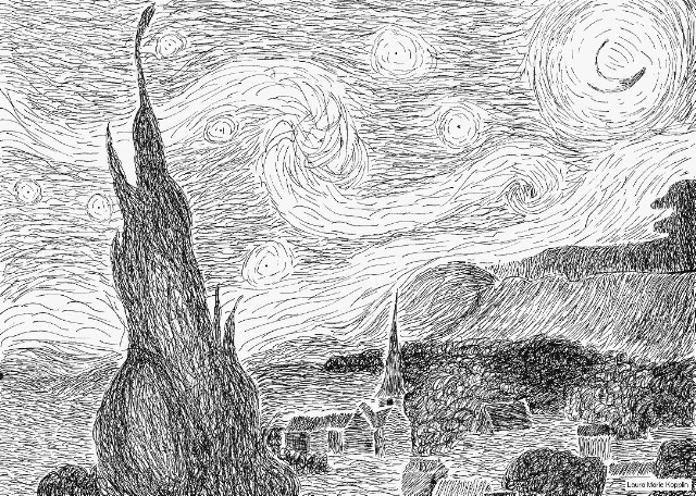 Dynamisch wirkende Zeichnung nach Vincent van Gogh                              (Tusche)