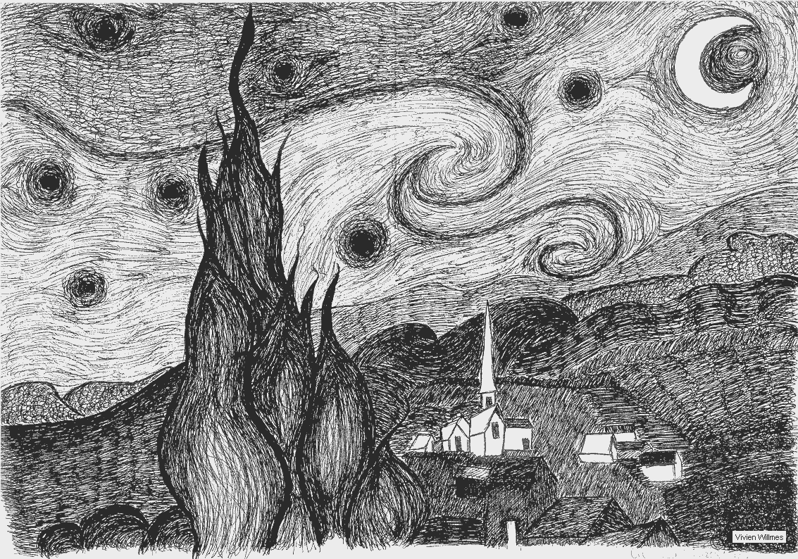 Dynamisch wirkende Zeichnung nach Vincent van Gogh                               (Tusche)