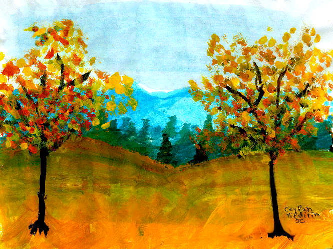 Wir malen unsere herbstliche Heimat (Wasser- u. Deckfarbarbeit) Ceylan Yildirim