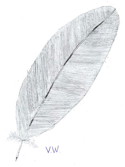 Bleistiftzeichnung: "Die Vogelfeder!" Gemeischaftsarbeit der Klasse 6a / 2006 WWg
