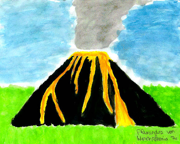 Wasserfarbarbarbeit: "Der Vulkanausbruch"