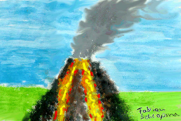 Wasserfarbarbarbeit: "Der Vulkanausbruch"