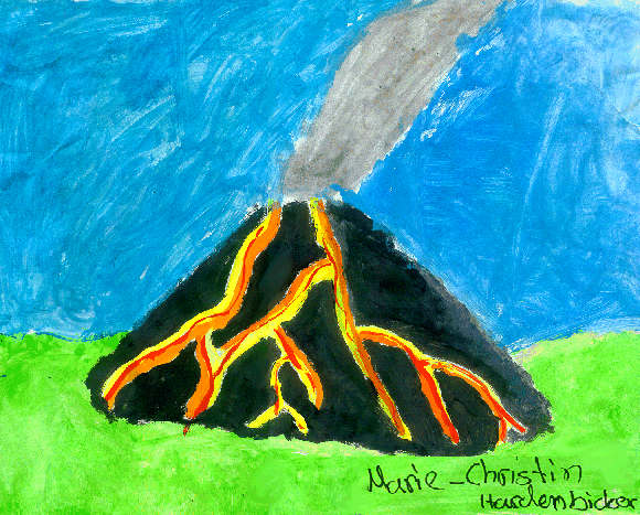 Wasserfarbarbarbeit: "Der Vulkanausbruch"