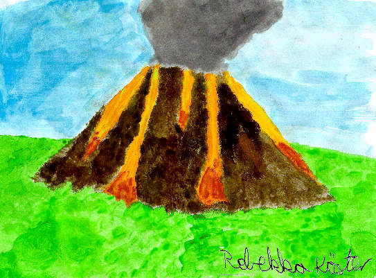 Wasserfarbarbarbeit: "Der Vulkanausbruch"
