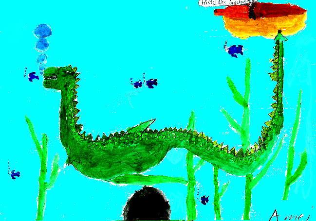 Wasserfarbbild: "Das Ungeheuer von Loch-Ness!" Amei Schüttler 5a / 2006 WWG