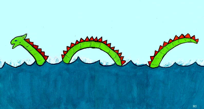 Wasserfarbbild: "Das Ungeheuer von Loch-Ness!" Marey Schiffers 5a / 2006 WWG