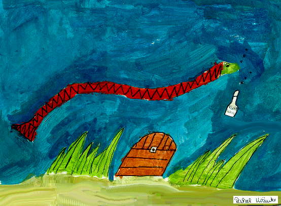Wasserfarbbild: "Das Ungeheuer von Loch-Ness!" Rahel Kräuter 5a / 2006 WWG