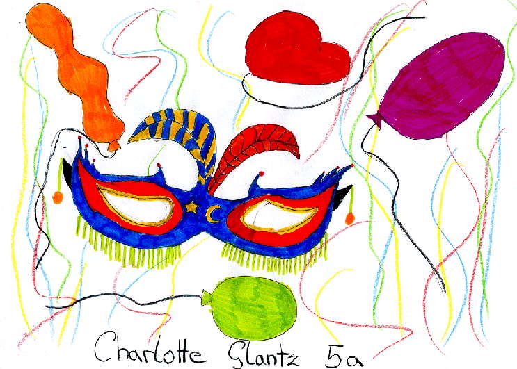 Um die Aula für unsere Karnevalfeier zu schmücken, haben wir Bilder und Plakate gemacht.