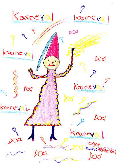 Um die Aula für unsere Karnevalfeier zu schmücken, haben wir Bilder und Plakate gemacht.