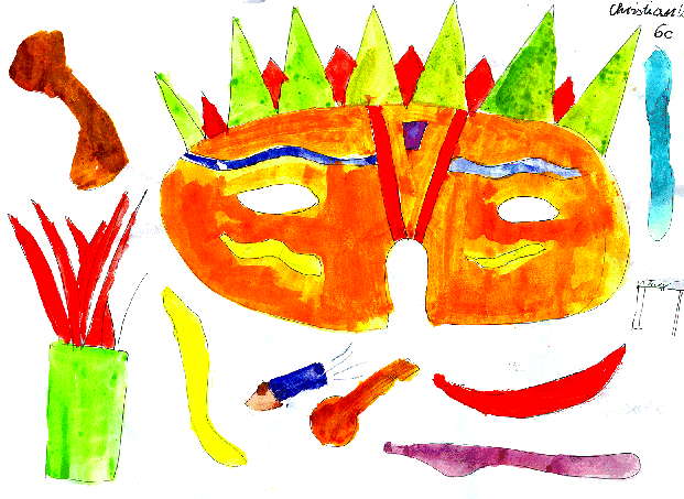 Um die Aula für unsere Karnevalfeier zu schmücken, haben wir Bilder und Plakate gemacht.