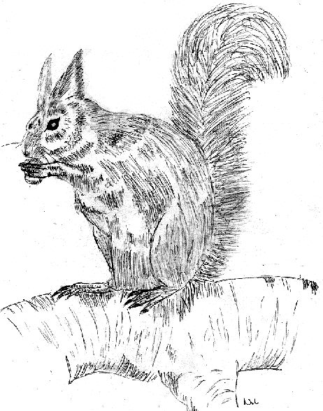 Bleistiftzeichnung: "Das Eichhörnchen"
