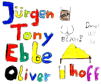 Bilderrätsel: "Regenschirm" / MT - "Meerschwein" / NG - "U(h)rwald" / AR - " ---" / DW - "Wäschespinne" / EB -"Munddusche" / SK